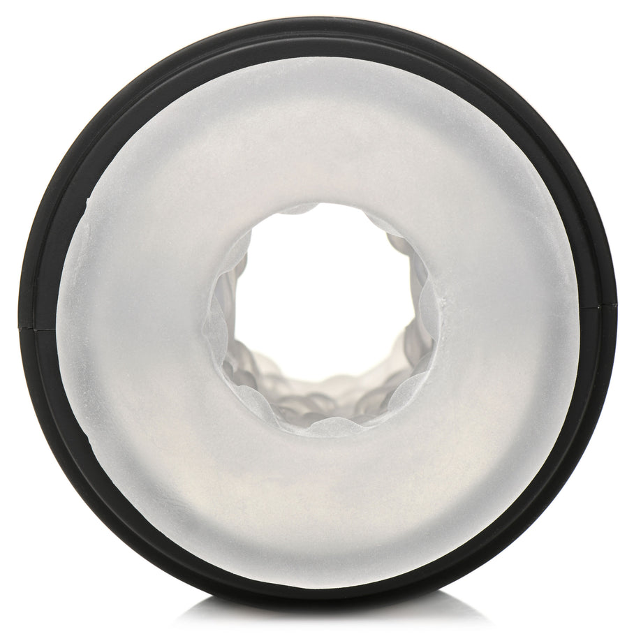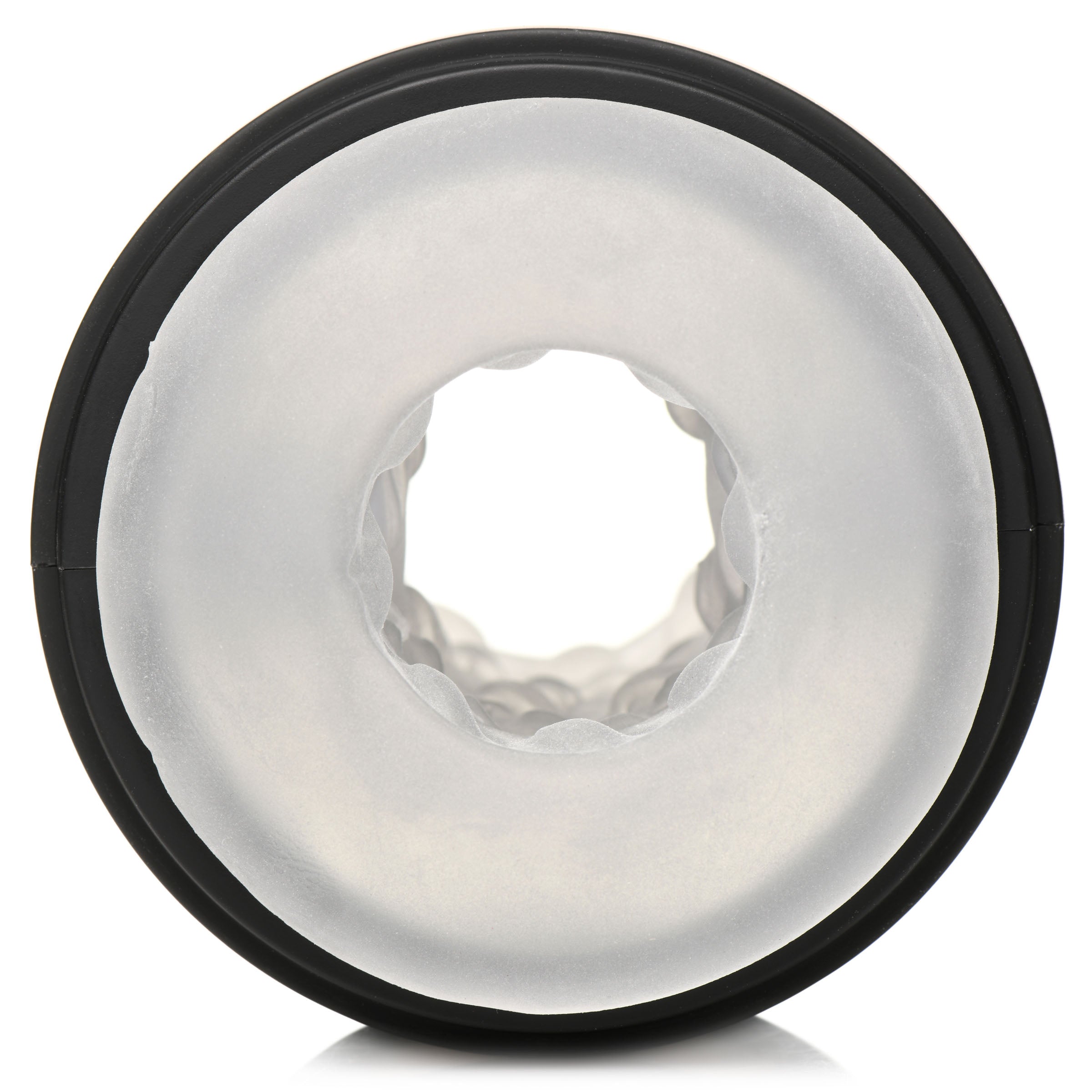 Jerking off has never felt so good with this vibrating mini double stroker! Designed to enhance your experience and give you an upgrade from using your hand, this stroker has plush, donut shaped double entries that cushion your pelvis as you pound your meat as 3 speeds and 7 patterns of powerful vibration stimulate your shaft! The open ends allow you to push through without a barrier so you can enjoy the entry and the way your head pops out on the other side. If you want a little something to push against, place either one of the end caps on to have something to press against. Inside of the stroker are nubs that stimulate and grip your rod with each stroke. The stroker sleeve is made out of soft, stretchy TPE and has a realistic feel that satisfies your needs. It's easy to remove for cleaning, too. The firm, outer case is easy to grip and is made out of ABS plastic. This stroker can handle a variety of shaft lengths and if your head pops through, you can combine it with a BJ so you can get licked, sucked and enjoy vibration all at the same time! The sleeve can be removed for easy clean up; simply wash with warm water and mild soap, then spray with a toy cleaner and rinse. Let air dry before placing it back into the container. Use only with water-based or silicone based lubricants. Recharge via the USB cord between uses.Grab some lube and squirt some in the stroker as well as on your shaft. If you're combining this with oral, try using a flavored, water-based lube so your partner can enjoy the taste! Turn the toy on and cycle through different speeds and patterns until you find the one you like. Then stroke away, enjoying the tight squeeze from this stretchy sleeve. Hand the stroker to your partner if they're ready to take you into their mouth and take control while keeping the buzzing vibes on your rod. After you're done, simply rinse, clean, and let it dry!