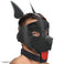 - Pup Hood: This pup hood has large eye holes for increased visibility and a strap down the scalp that holds the big, perky ears in place and shows off your hair. The muzzle protrudes just like a canine and has a red, panting tongue hanging out!