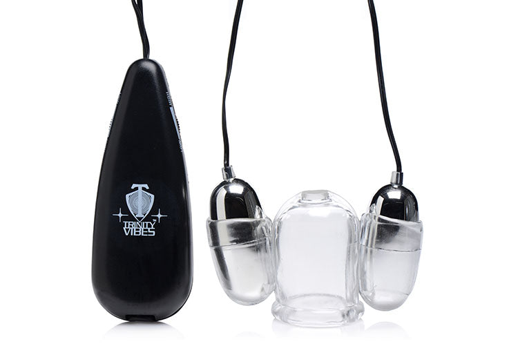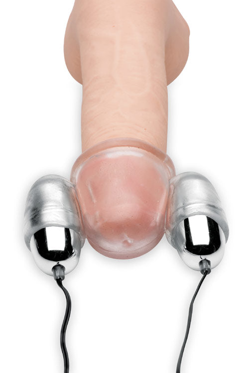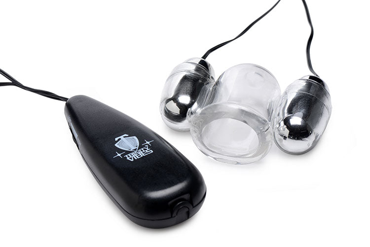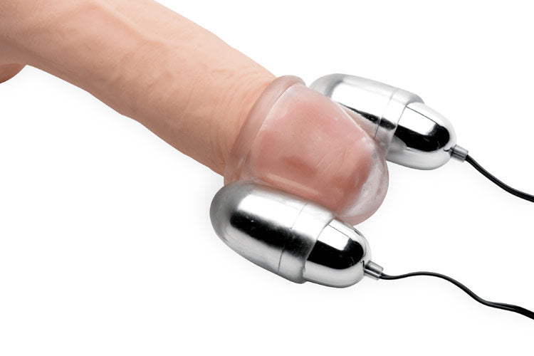 Within this clear teaser, the head of your penis will be massaged beyond belief! Use it on your own or with a partner to send extreme vibration into the most sensitive part of your body. The dual bullets hum with the power of the controller, which utilizes a smoothly rolling dial to adjust intensity. A hole at the top allows your climax to burst out and can be covered with a finger to play with the sensation of suction. The stretchy material fits almost all sizes and can be used with silicone or water-based lubricants.