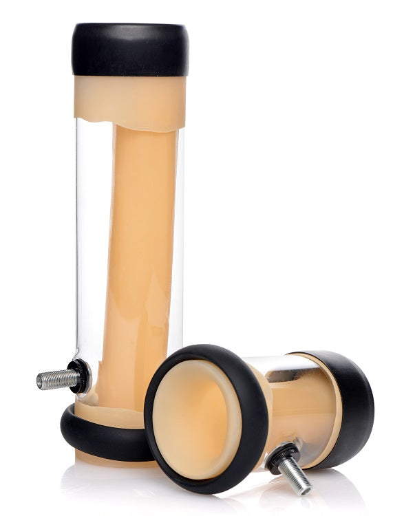 Have you been loving your Milker Automatic Deluxe Stroker Machine a little too much? When it's time to replace the cylinders, we've got you covered. Available in two sizes, these cylinders allow you to target pleasure on the tip of your penis or sheath your entire shaft in pleasure. The soft, supple rubber inside will create a one-of-a-kind stimulation for your member with powerful suction. Be sure to use only water-based lube to ensure the durability of the material. Clean after play with warm water and mild soap.
