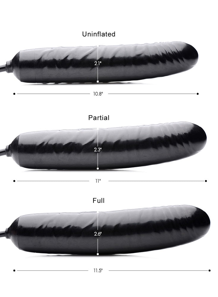 Feel the power, when you use this inflatable dildo. It's made of sturdy, heavy-duty rubber that's built to last. Once placed inside, the dildo is inflated using a bulb with a release valve. It's so realistic; it even has the proper veins and contour of an actual penis. The dildo measures at 11" long and 2" in diameter. Keep in mind that the dildo will inflate in width not height. So how much can YOU take?