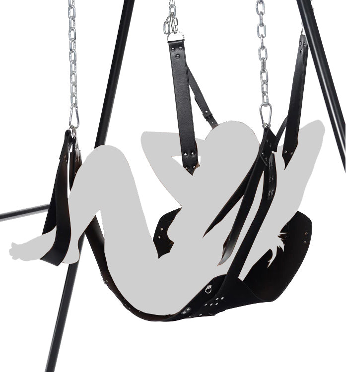 This durable and adjustable leather swing allows you to suspend your partner in the air, while maintaining access to every part of them. The leather material is heavy duty and lined with Super Fiber. The sling allows your partner to lie back and place their feet in the included stirrups. The padded pillow will cradle their head, while you can adjust the straps at the head to raise or lower their upper bodies. The stirrups are detachable with strong metal carabineers, and the advanced material reduces some of the weight for easier transport.