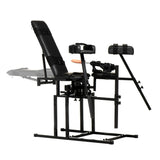 Everything you'd ever want in a sex machine and chair combo is here in this Leg Spreader Obedience Chair! The well built chair is sturdy and can handle up to 330 lbs of weight. Built out of iron and wood it is the perfect, kinky addition to your home dungeon! It has an adjustable back rest so you can sit up or lay back. It also has adjustable leg supports that lift or lower for legs up or legs out positions. The plush padding of foam covered in vegan leather makes the chair more comfortable for longer sessions. Enjoy the powerful sex machine that comes with the chair! You can use it attached or detached and handheld as a power-thrusting machine with up to 195 thrusts per minute! Use the corded remote with its variable speed dial to change the thrusting speed without ever running out of power! Use the silicone dildo or customize it with your own preferred dong; as long as you have a Vac-U-Lock compatible dildo, you can swap it out and enjoy your own favorite toy! Strap in with quick release restraints and easy to use buckles. Use it on yourself and enjoy your own personal pounding from the sex machine, or strap your lover in! Pull their wrists behind their head by attaching cuffs to the D-rings on the back of the chair!