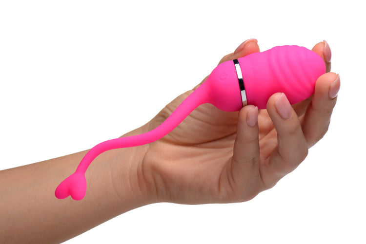 This silky-smooth vibrating bullet has 10 exciting settings to play with, from different speeds to pulsing patterns, all operated by the handy remote control! The smooth, wavy texture provides additional sensation, whether used internally or externally. The flexible, but strong retrieval cord makes removal easy after a long session of orgasmic bliss. You can even use the vibrator without the remote control for more hands-on intimacy. Both components are wire-free and rechargeable for your convenience. Made of premium silicone, this vibe is non-porous and phthalate-free. Clean after use with mild soap and water and avoid use with silicone lube to preserve the material.