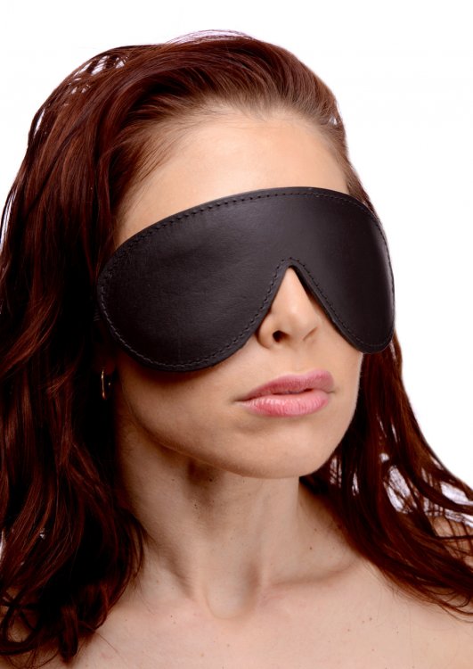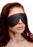 This simple blindfold is held around the head by a black elastic band. There's padding on the inside of the eyes for comfort. Note that it is possible to see a little light around the edges of this blindfold, but it does make a great starter fold for those who are just engaging in light bondage play.