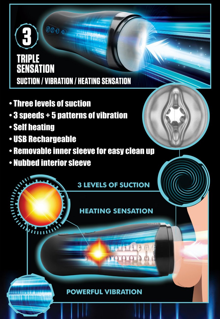 - Hot Vibes:This milker heats up so you can enjoy its warm center as you choose from 3 speeds and 5 patterns of vibration.