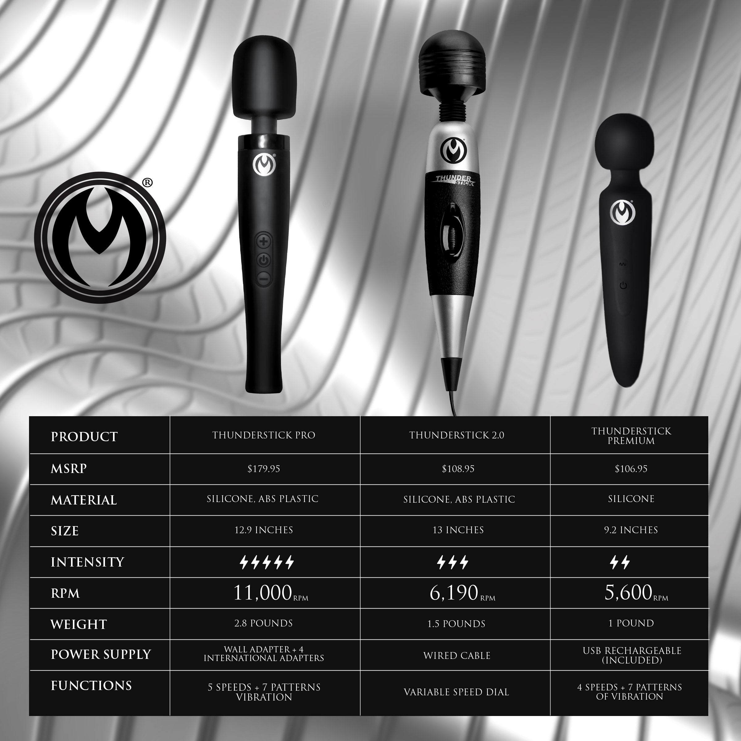 The Thunderstick just got a major makeover and, if possible, it's better than ever before! The premium version of your favorite wand massager has ditched the cord for a new, rechargeable motor! Rather than the variable speed mode, you'll be able to tease and please yourself with 4 vibration levels and 7 pulsation patterns. The entire wand is now swathed in silicone, giving it a luxurious look and feel. The ergonomic handle gives you a comfortable grip and reduces reverberation into your hand and arm. Now the Thunderstick is even waterproof, making it a fun accessory during a steamy shower or a relaxing bath. Made of high-quality silicone, this massage vibe is non-porous and phthalate-free for a body-safe experience and thorough clean-up with mild soap or toy cleaner. It is recommended that you do not use with silicone lubricants.